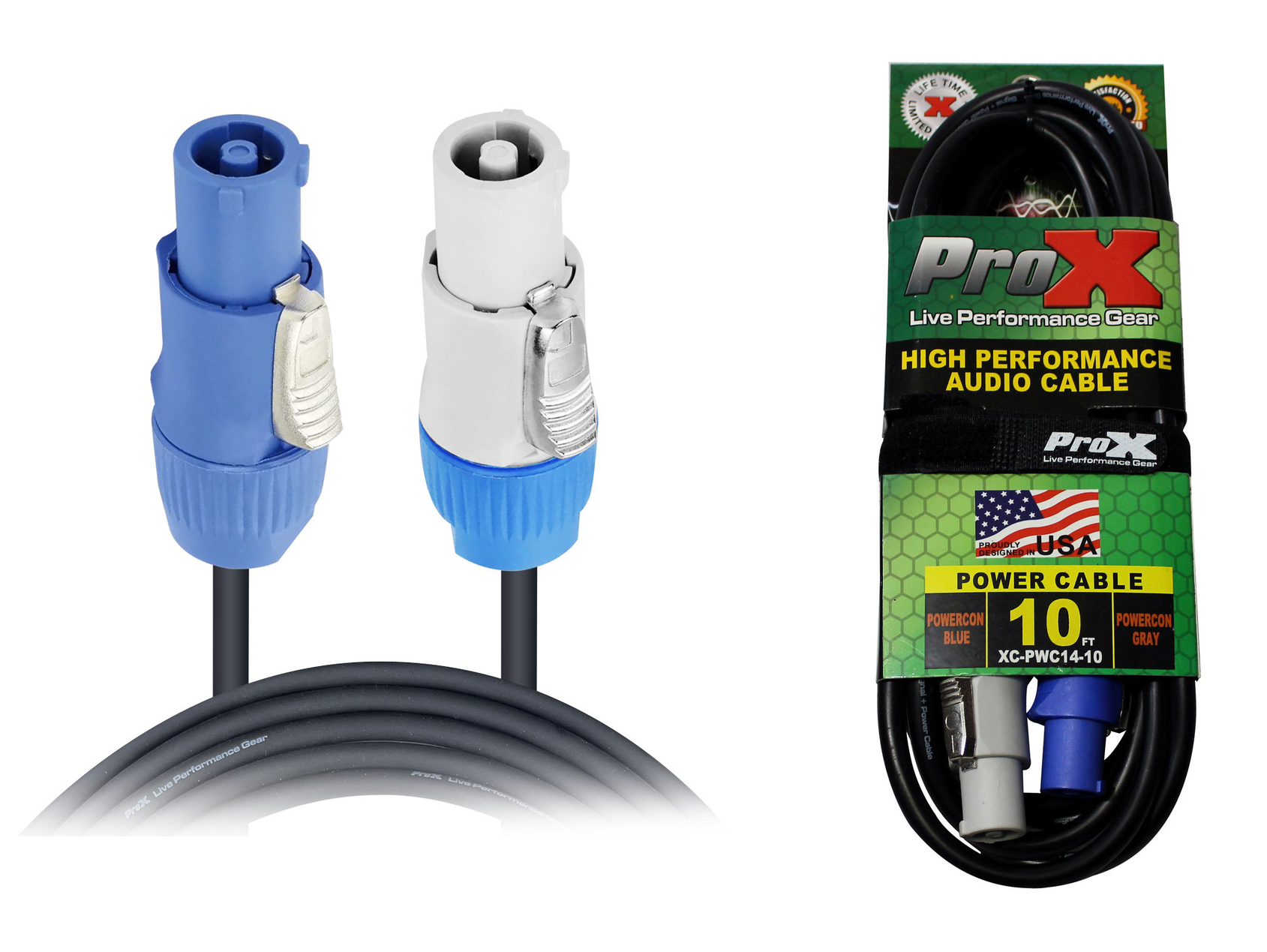 ProX XC-PWC14-10 10ft Pro Power Link Cable 14AWG Grey to Blue Male 5 Pack