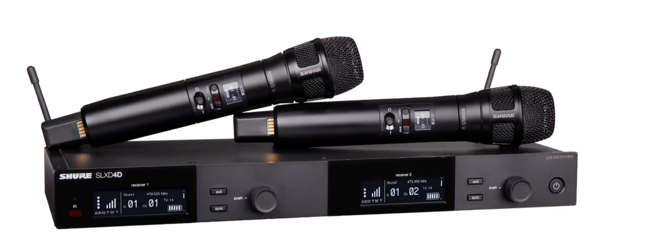 Ships with the SLXD4D dual-channel receiver and two SLXD2/N8SB handheld transmitters, so you can manage multiple microphones effortlessly. Includes antennas, rackmount accessories, and 4 AA batteries for plug-and-play convenience. - Nexadyne™ 8/S Supercardioid dynamic capsules: